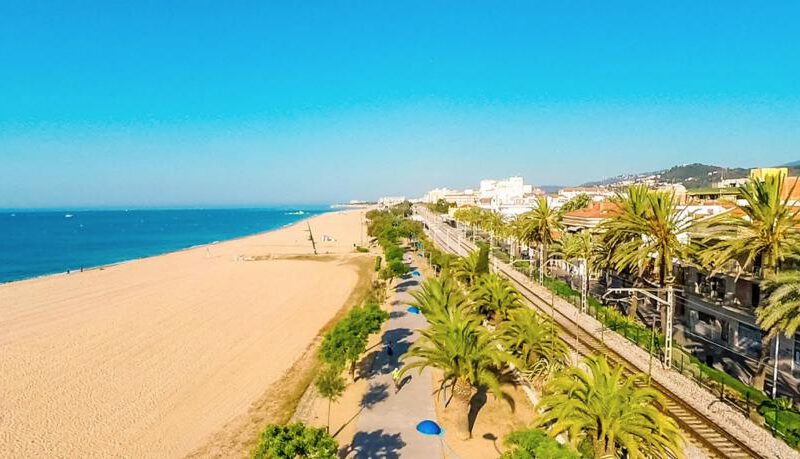 Vanuit hier sta je aan het begin van de boulevard heerlijk om smaiddags een dagje strand te pakken, Door de steden loopt de spoorlijn naar barcelona parallel met het strand. Met aan de strandkant prachtig wandelpad plat en breed met strandbarren , eet gelegenheden. wij zijn eerst gaan zwemmen eind van de middag daarna bij een leuke strand tent maui gegeten beetje prijzig maar zeker lekker (tip argentijnse biefstuk) en met uitzicht op het strand mag je natuurlijk niet klagen google.maps .